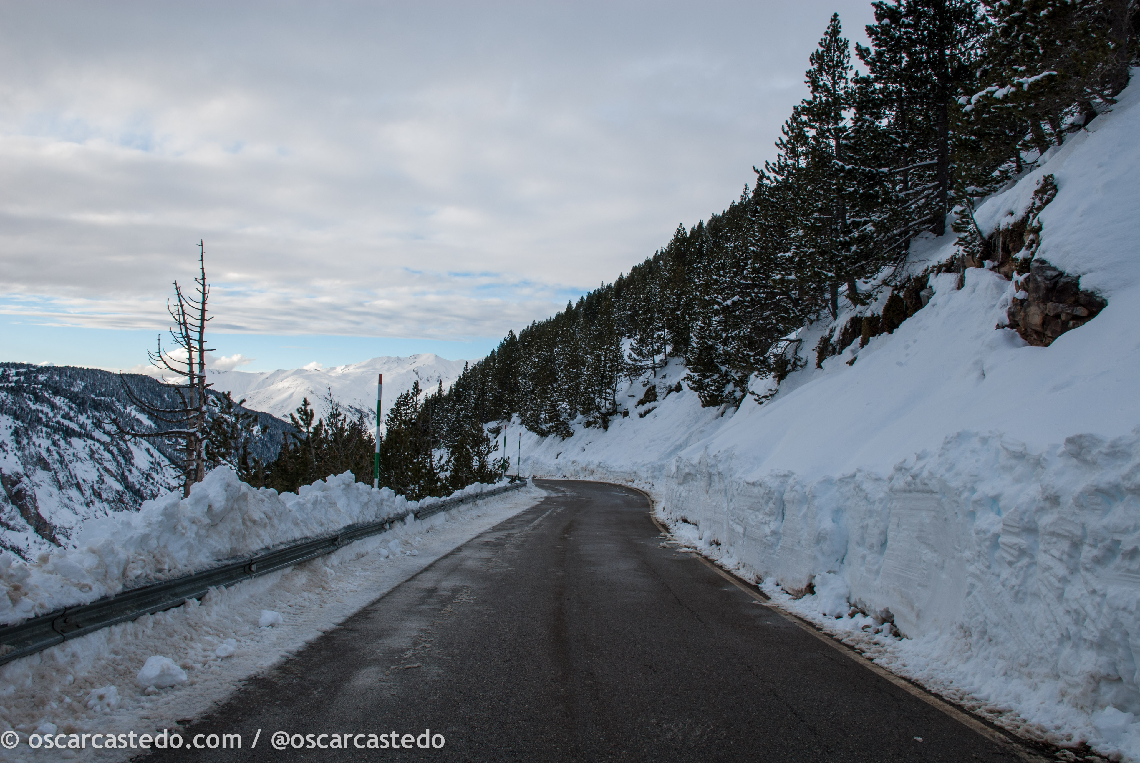 Abandonamos el Valle de Arán por el puerto de la Bonaigua, y menos mal, porque sino hay que bordear todo el valle, lo que supone casi 2h de coche. El puerto, que estaba abierto pero nevado, ofrece unas panorámicas espectaculares del valle y de los Pirineos, naturaleza salvaje atravesada por una carretera serpenteante. Así entramos en el valle de Espot, en la comarca de Pallars Sobirá. El pueblo de Espot está situado a escasos 2km del Parque de Aigüestortes y vive principalmente del turismo de esquí (estación de Espot) y del turismo rural que sobre todo en primavera y verano viene a recorrer y explorar el Parque y sus numerosas rutas.