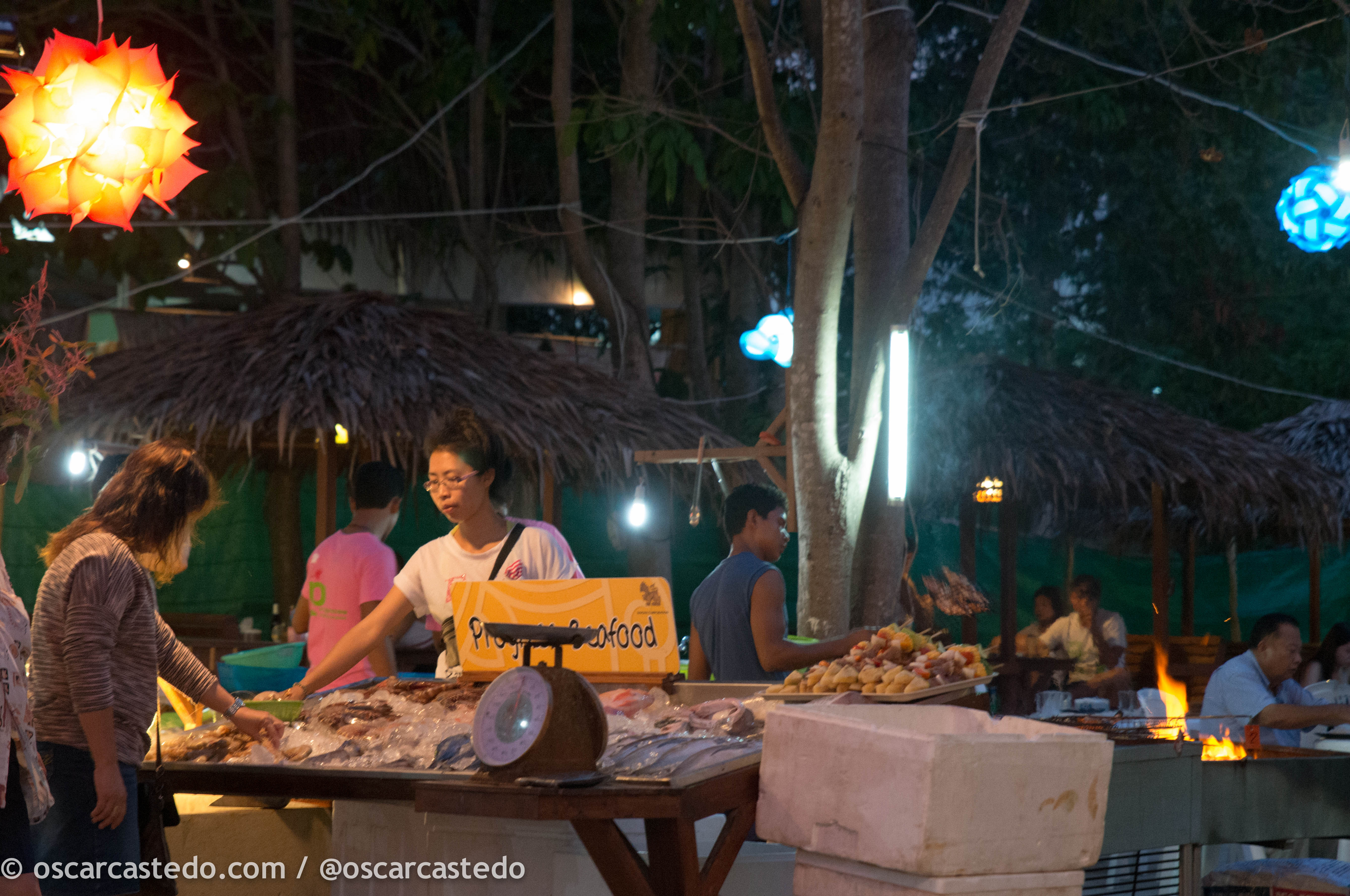 La calle principal de la isla, la “walking street” es una sucesión de restaurantes, bares, tiendas, agencias y empresas de buceo (una de las principales por cierto está regentada por un español). El reclamo primordial de los restaurantes es el pescado fresco, con sus parrillas enfocadas hacia la calle muestran el género y que tu seleccionas.