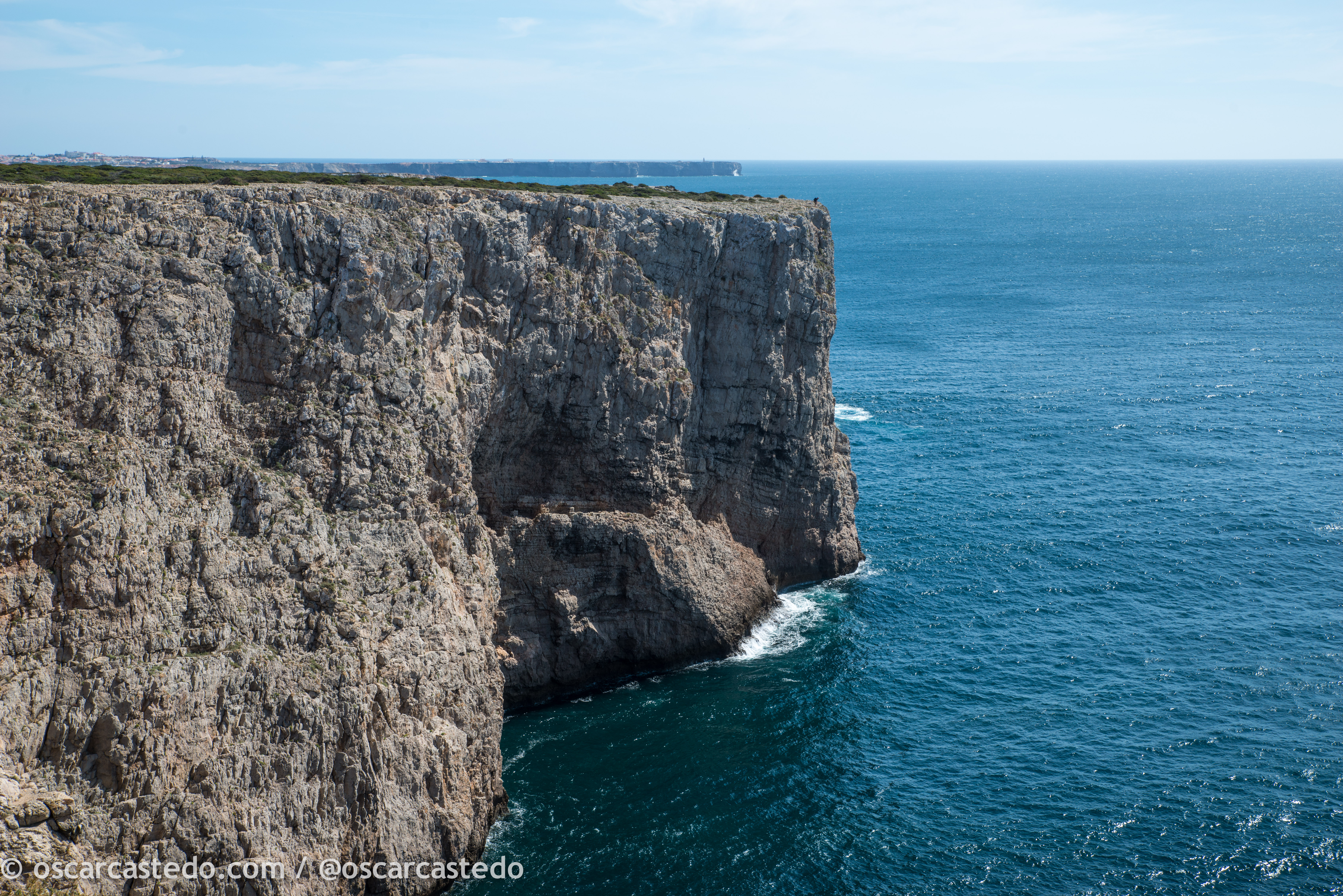 Al llegar me encontré unos acantilados salvajes y pendientes, donde las olas rompían con ímpetu. Su faro y una antigua fortaleza, permanecen como pacientes observadores de los barcos que viajan entre el Mediterráneo y el Atlántico desde hace siglos. Como hecho histórico, aquí tuvo lugar la batalla del Cabo S. Vicente en el s. XVIII.